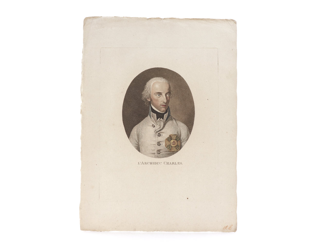 Dazu: L'Archiduc Charles. Handkolorierte Lithographie(32x23 cm).