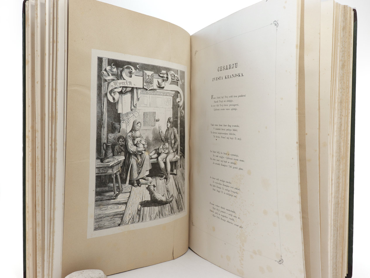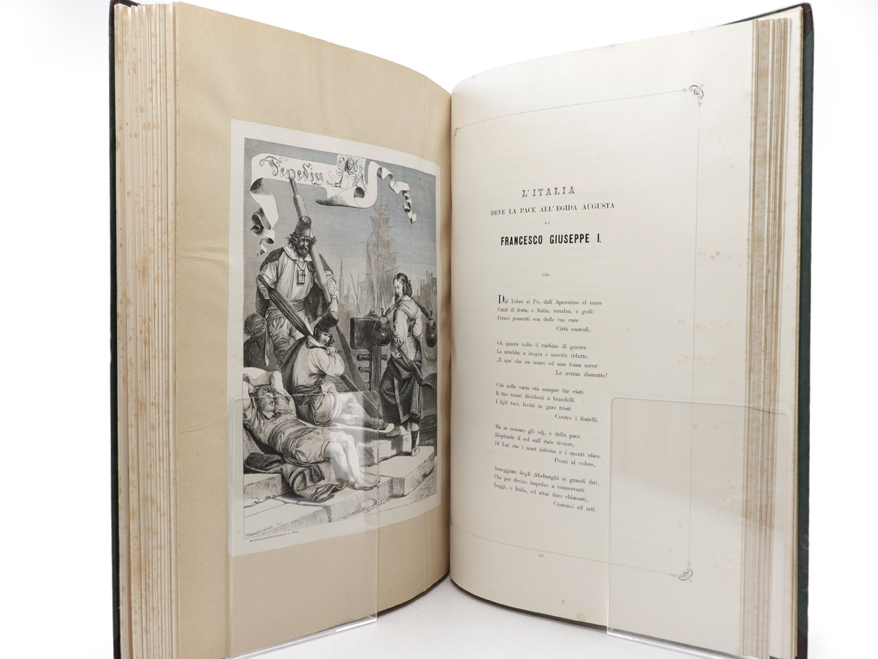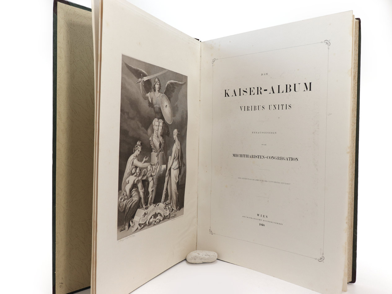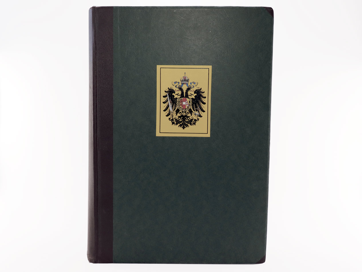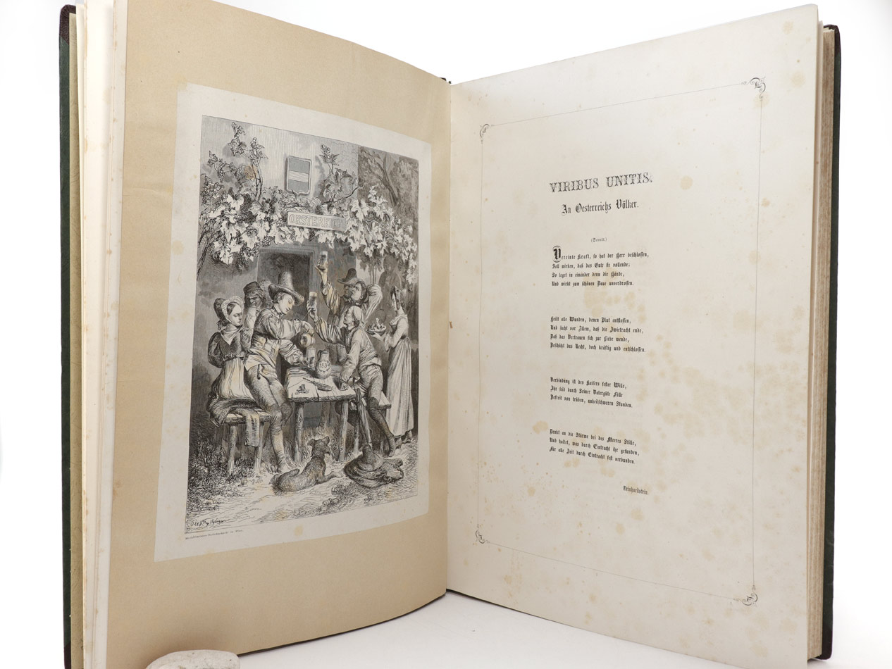 Gr.-2°, ca. 45 x 32 cm, 1 Bl. Vortitel, 4 Bl., 244 S., mit 19 Tafeln in Holzstich, 1 Frontispiz (Stahlstich des Kaiserpaars von Axmann), etwas späterer Halbleinenband mit modernem aufkaschiertem farbigen Doppeladler auf gelben Grund.