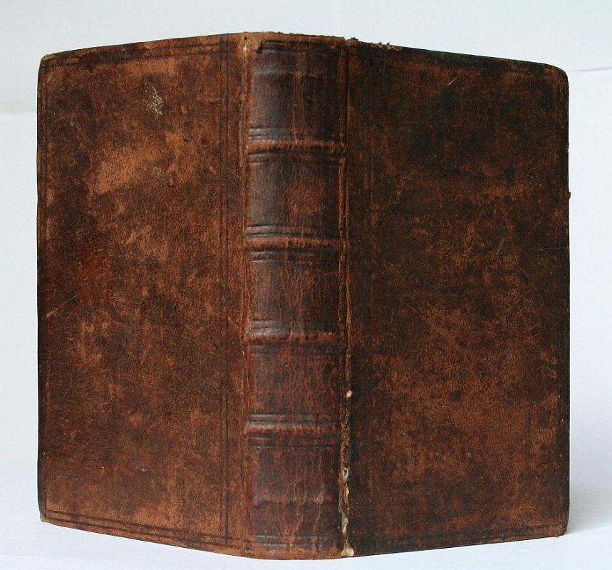 Zustand 3, der vord. Falz der Decke durch Wurmgänge angeplatzt (ca. 6 cm), etwas berieben und bestoßen, handschriftliche Nr. auf fliegendem Vorsatz, zahlreiche Blatt im weißen Rand wurmlöchrig, durchgehend gebräunt.