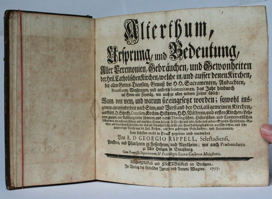 .... üblich;Wann, von wem, und warum sie eingesetzt worden ; sowohl insgemein als insonderheit nach Sinn, und Verstand der Heil. allgemeinen Kirchen, als Göttl. H. Schrifft, ... gezogen, mit Auflesung vieler schweren, ... Difficultaeten, wie auch viler schönen, und nutzlichen Sitten-Lehren, so für alle und jede, hohe und niedere Stands-Persohnen, ... als ein ausführlicher, und sehr nothwendiger Bericht von der Heil. Kirchen, …..Zum sechsten mahl in Druck gegeben und vermehrt…