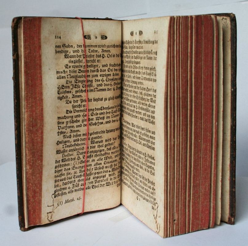 Kl.8°, 1 gefalteter Titel, 4 Bl., 540 S., 10 Bl. Register, 1 gefaltetes, gestochenes Frontispiz (Selestadium = Schlettstadt), Ldr. der Zeit a. 4 Bünden, dreiseitiger Farbschnitt,