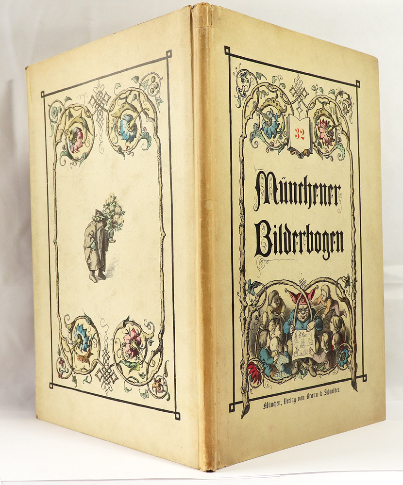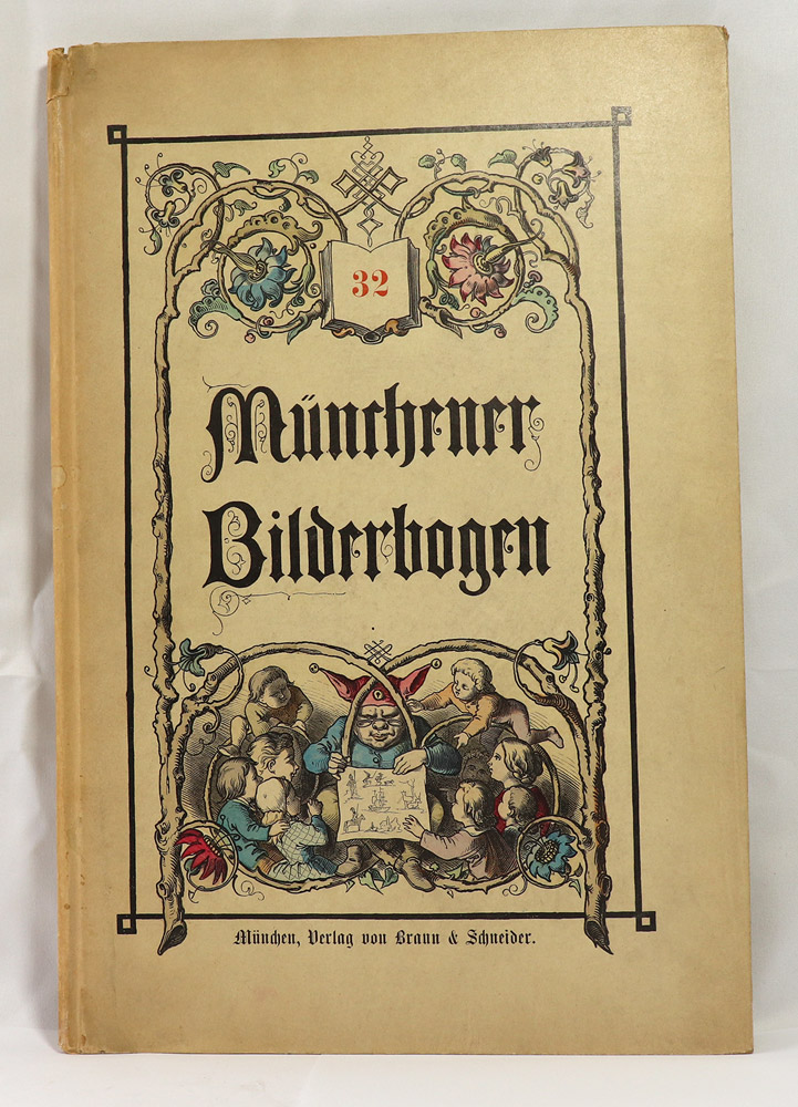4°, 1Bl., 96 S., 1 Bl., durchgehend illustriert mit 23 doppelblattgroßen handkolorierten Bilderbögen u. a. von Lothar Meggendorfer. farbig illustrierter Original-Halbleinenband