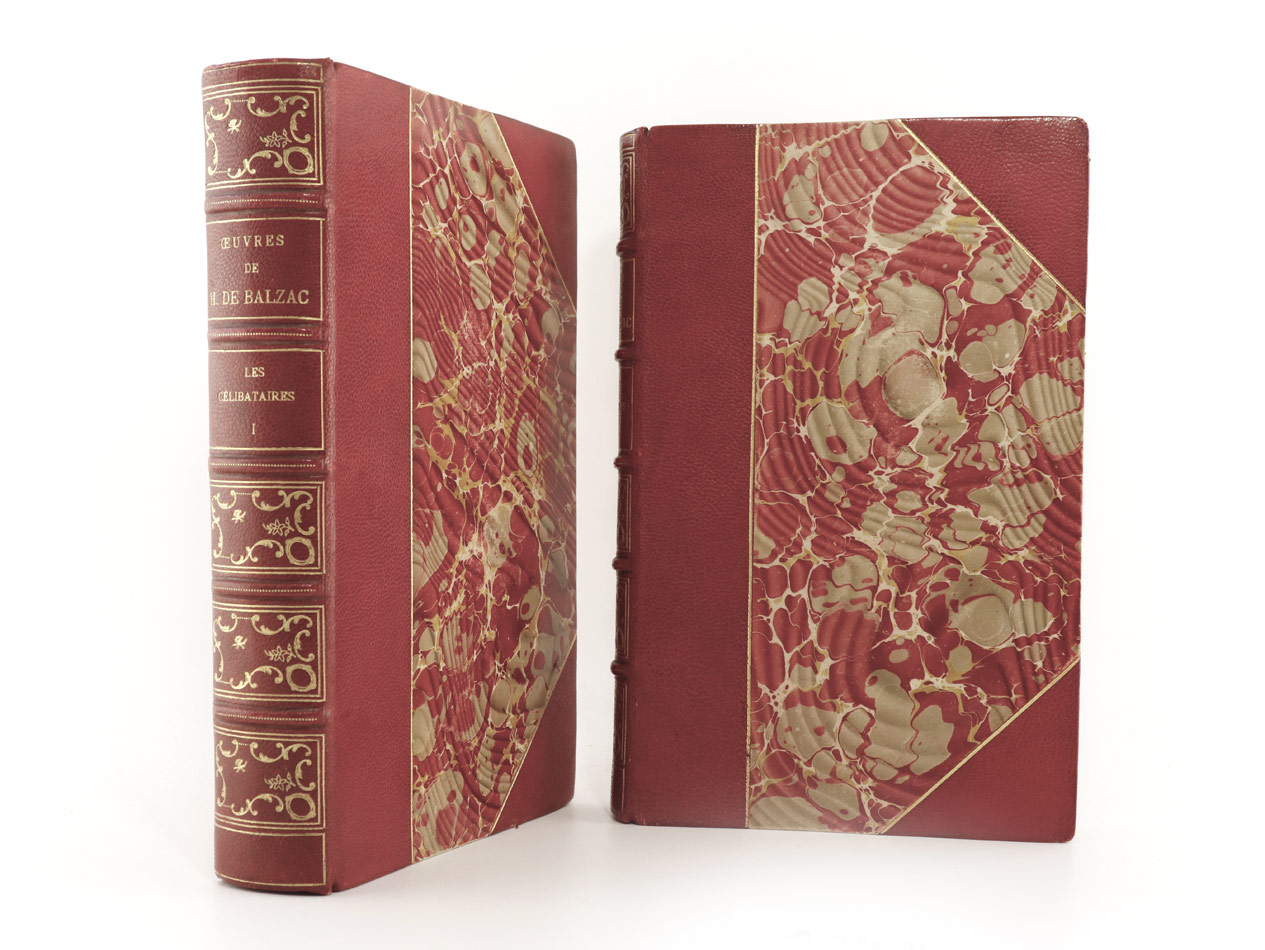8°, 1 Bl. Ex Libris, 1 Bl., 2 Bl., 447 S., 1 Bl.; 1 Bl. Ex Libris, 281 S., 2 Bl., Illustrations de Pierre Vidal et Cortazzo, zahlreiche Illustrationen auf Tafeln mit Seidenhemdchen, marmorierte Halbleinenbände, goldgeprägte Rückentitel und Rückenvergoldung. Kopfgoldschnitt, untere Seite unbeschnitten,