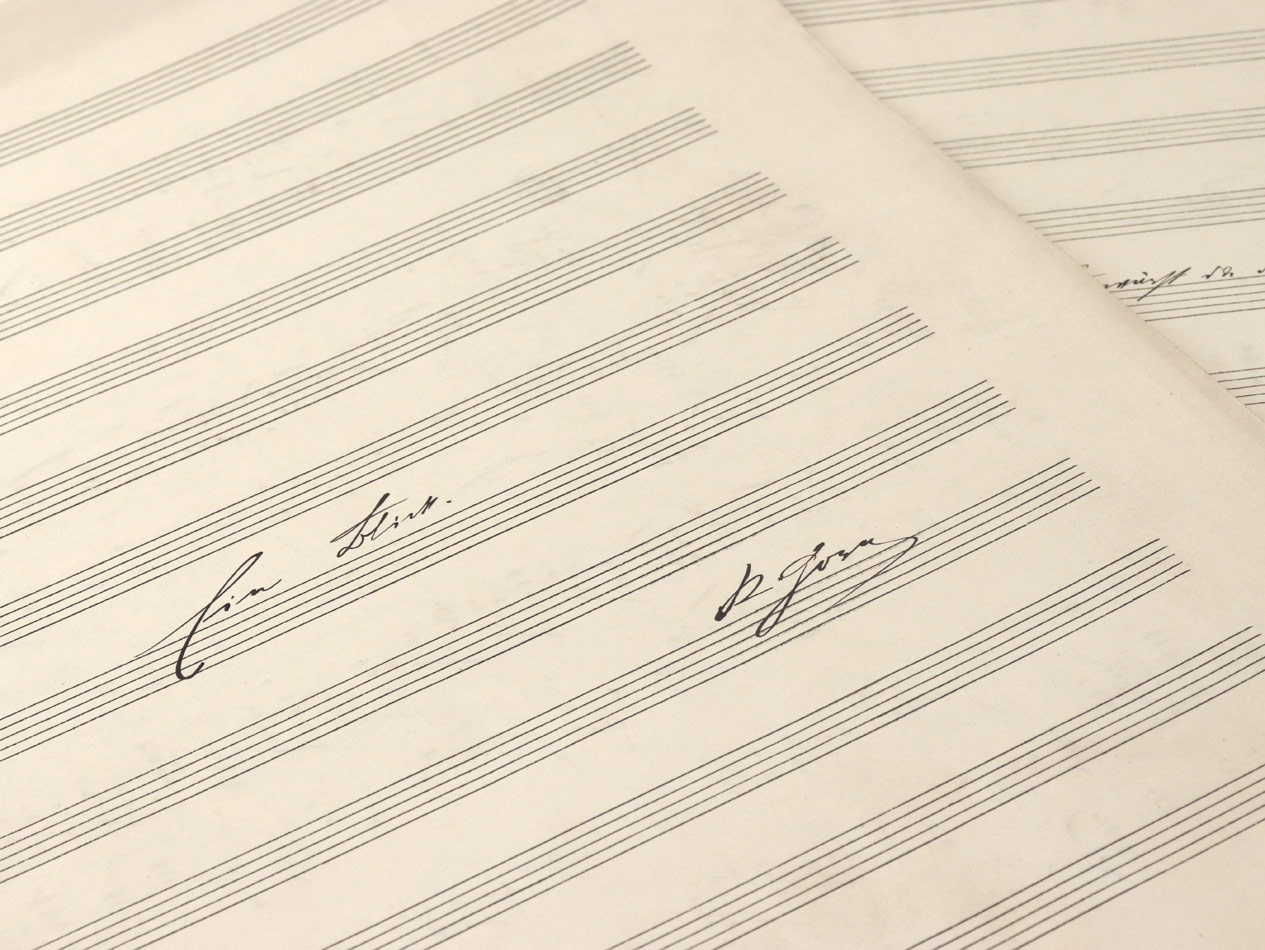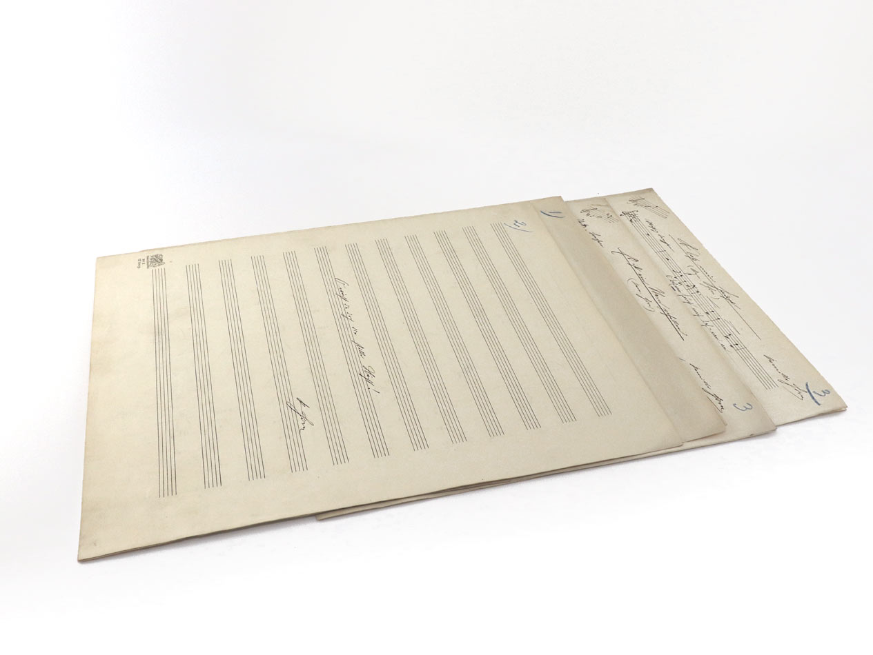 Guter Zustand, einige Annotationen in Blei- bzw. Fardstift (wohl von Lillie Claus-Dostal, aus derem Nachlaß die Noten stammen).