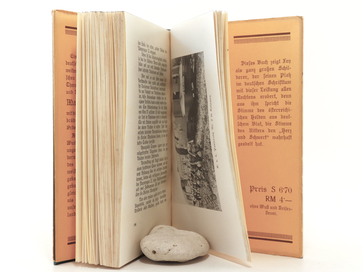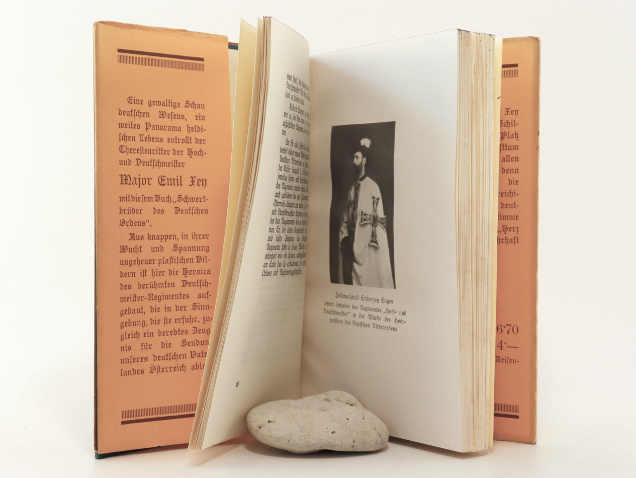 Dazu: Flugblatt zu "Vaterländische Weihestunde am Samstag, den 12. August 1933, um 20 Uhr vor der Hietzinger Kirche ...bei der Major Emil Fey, M.-T.-O.-R. sprechen wird". & maschinschriftliches Dankschreiben mit eigenhändiger Unterschrift Feys an Gustav Dawis, Eigentümer der Kronenzeitung, für eine Spende für den Fey-Fonds. & Porträtfoto von Willinger (32x24 cm) mit 3zeiliger Widmung Feys an einen Freund in Tinte.