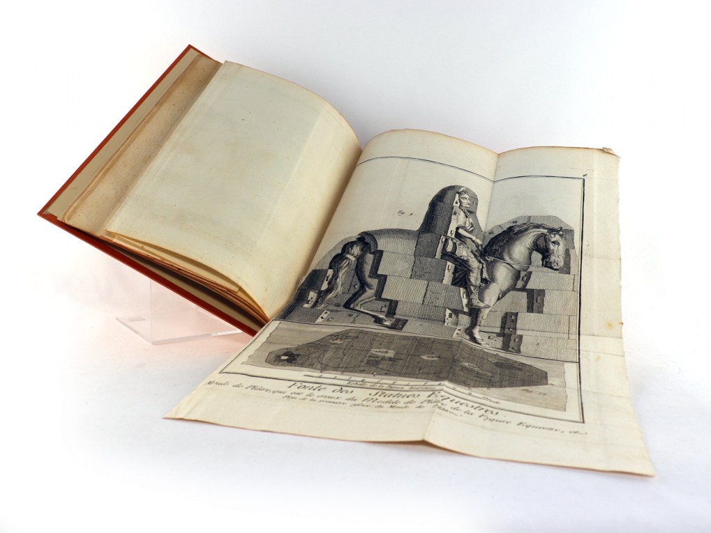 4°, 4 S., 5 Bl., 6 Kupfertafeln (davon 5 gefaltet), oranger Pappband mit aufgeklebtem Deckeltitelstreifen und dreiseitigem Rotschnitt.